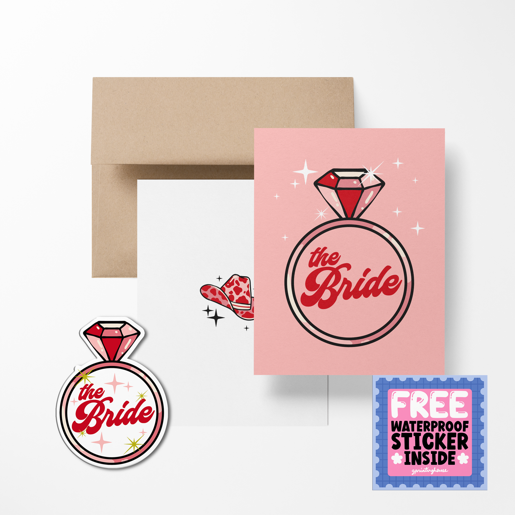 This listing is for single A2(4.25x5.5”) cards folded, blank inside with a free waterproof vinyl sticker that matches it.